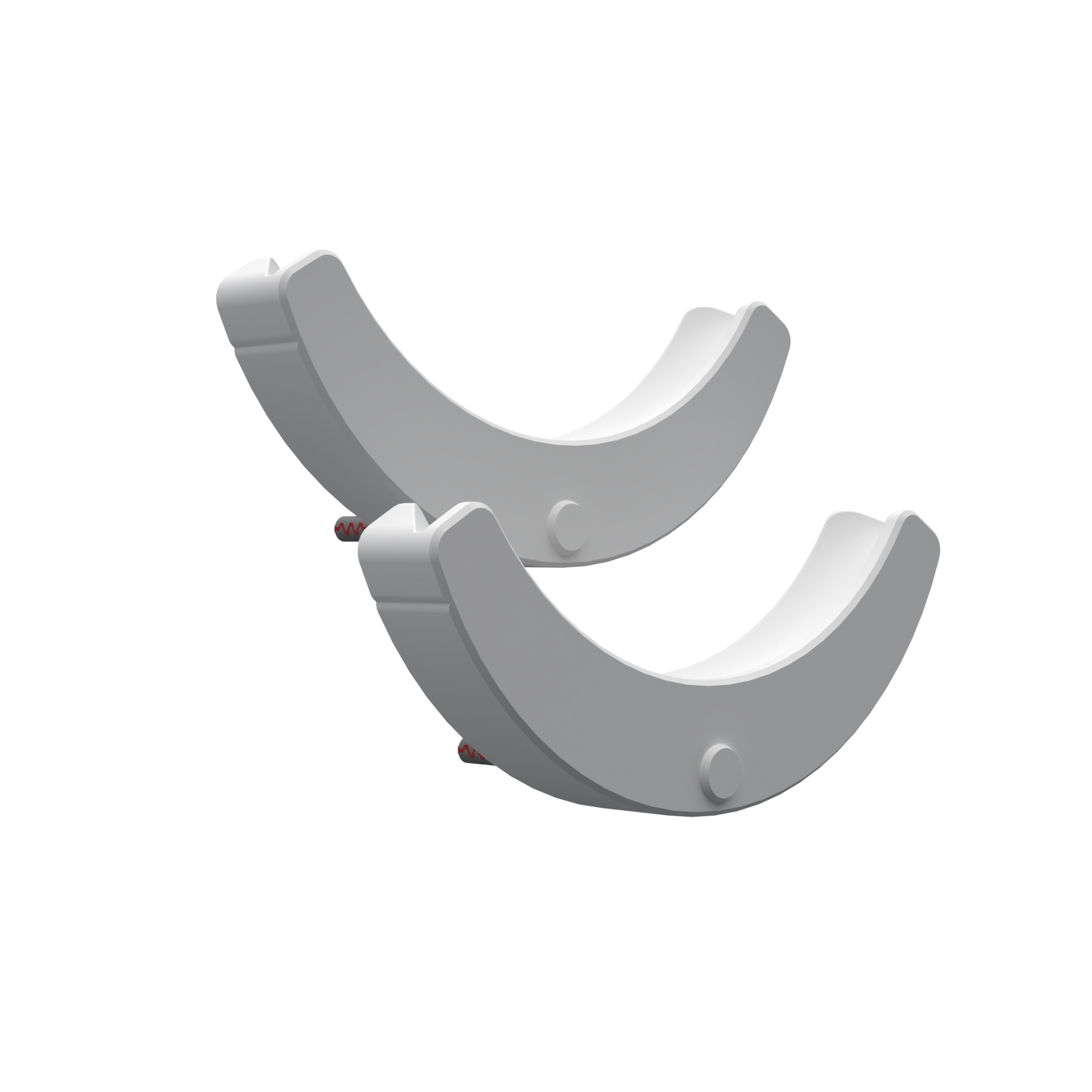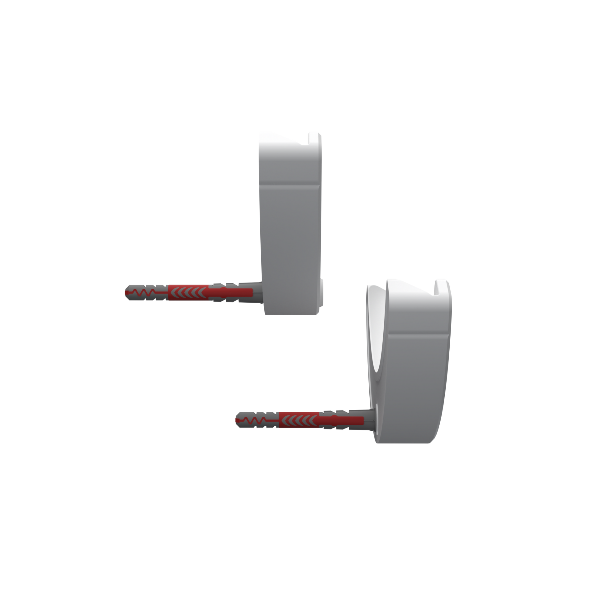 Das Set besteht aus 2 Laufradhalter, 2 Schrauben und 2 Dübel.