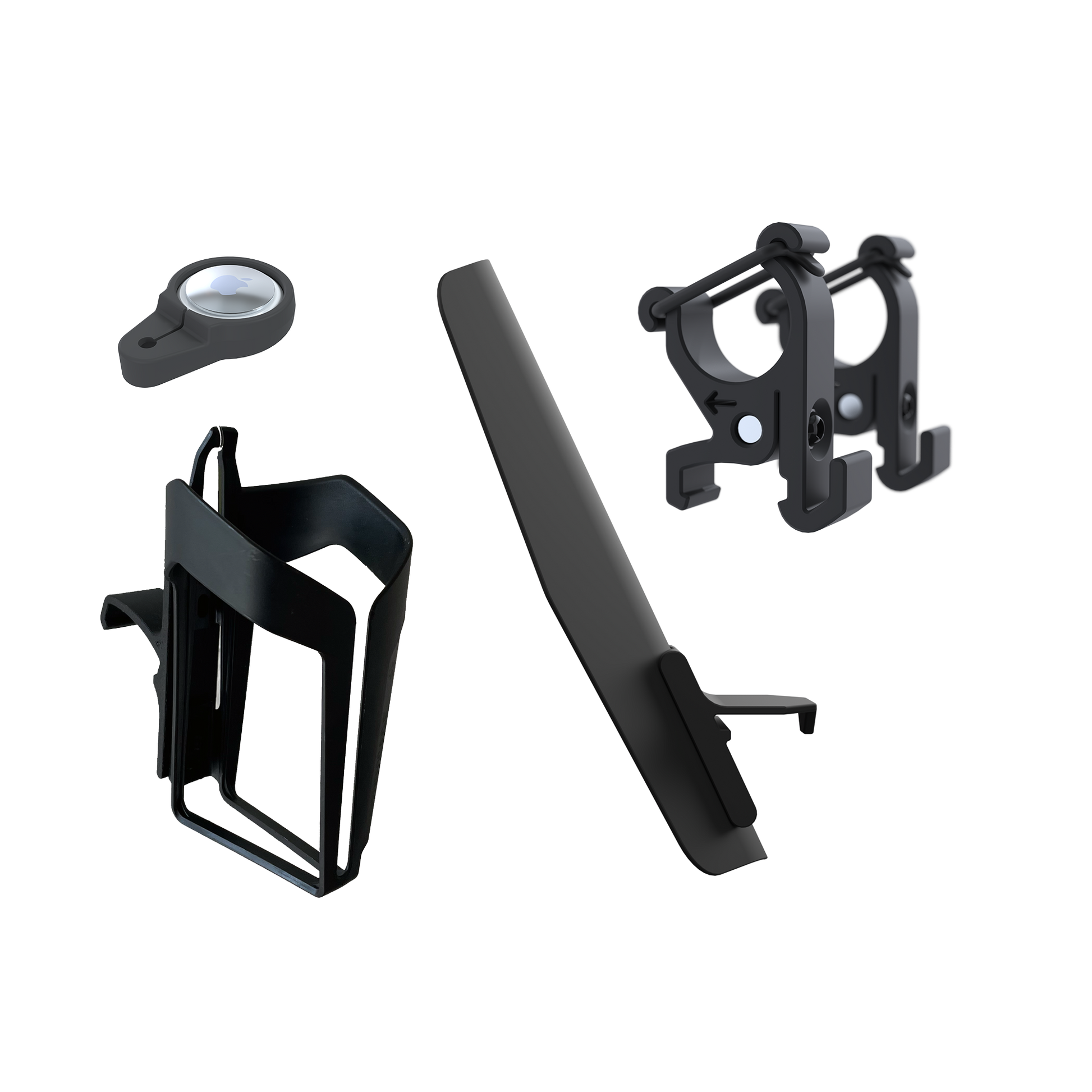 Unser Tuning Kit bestehend aus Laufrad- bzw Fahrradhalterung mit Sicherung, aufsteckbarem Schutzblech, Airtaghalterung und Trinkflaschenhalterung erleichtert Euren Alltag mit dem vielseitigsten Kinderwagen und Fahrradanhänger auf dem Markt.